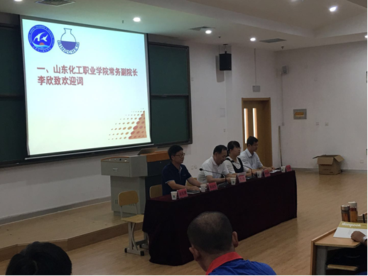 李院长发表了热情洋溢的欢迎辞,对弘润石化第三期技能培训班领队和222名学员表示热烈的欢迎。李院长介绍了潍坊市滨海新区的发展前景及山东化工职业学院的发展规划和前景展望,并对这次培训提出了殷切期望。他说,希望全体学员一要乐于接受培训,做一名富有专业精神的技术专家;二要善于学习钻研,做一名追求工匠精神的技能大师;三要惯于遵规守纪,富有激情、追求高绩效,做一名崇尚职业精神的职场精英。