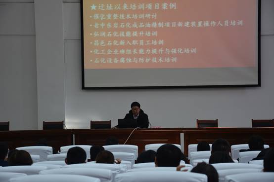 2017年下半年以来,学院相继为企业举办了催化重整技术培训班、老中东岩石化成品油精制项目新建装置操作人员培训班、弘润石化技能提升培训班、昌邑石化新入职员工培训班、化工企业班组长能力提升与强化培训班、石化设备腐蚀与防护技术培训班,为化工企业培训了一大批管理、专业技术和技能操作人才。