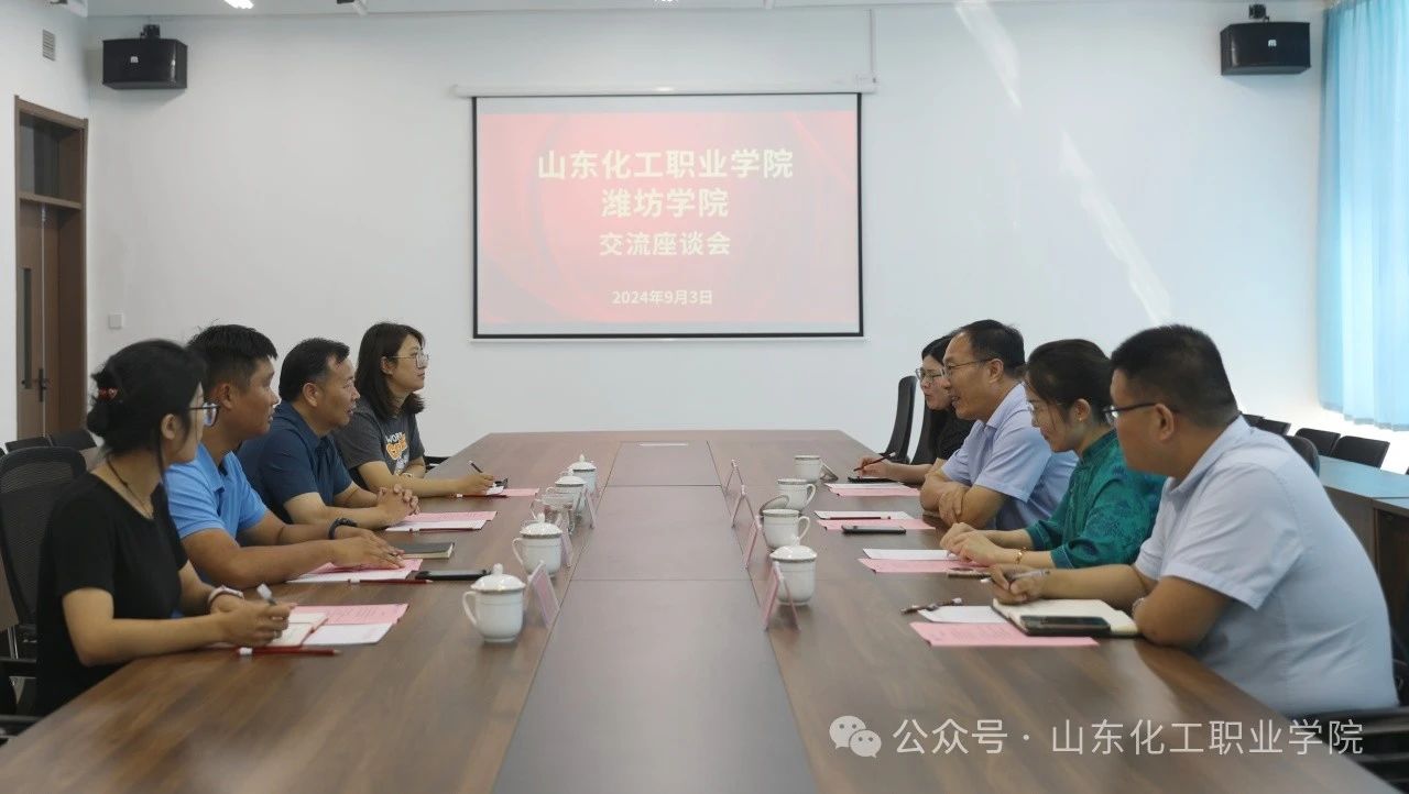 座谈会上,贺志强对贺志波院长一行表示热烈欢迎。他简要介绍了学校的办学体制、发展历程、化工特色和人才培养,重点介绍了学校在社会服务方面取得的成绩。他提到,学校化工专业特色鲜明,人才培养质量和就业优势突出,受到社会各界的广泛认可。学校已与多家优质化工企业建立良好的合作交流关系,社会培训和继续教育服务发展成熟,提供的培训项目与企业发展、产业需求契合度高,行业认可度高,希望通过本次交流可以在继续教育领域与潍坊学院达成深入合作。学校培训处处长、继续教育学院院长王超同志详细介绍了学校继续教育和社会培训的具体开展情况。