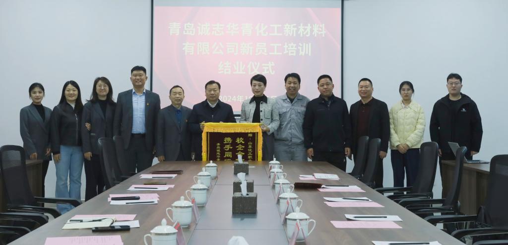 青岛诚志华青化工新材料有限公司生产代表(经理)周宏伟,学员培训带队队长、综合管理主管梁荣茂,人事主管苏雅楠,学员代表李响及学校培训处负责同志参加结业仪式。