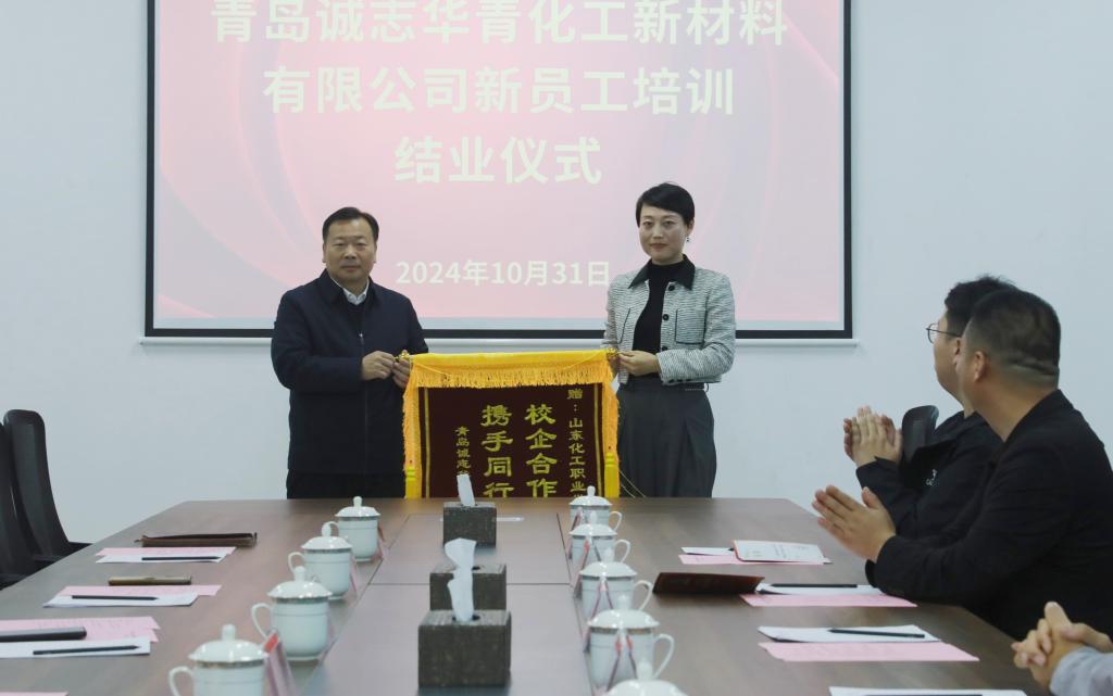 10月31日下午,我校举行青岛诚志华青化工新材料有限公司新员工培训结业仪式。青岛诚志华青化工新材料有限公司副总经理刘伟伟、学校校长贺志强出席结业仪式,常务副校长冯喜成主持仪式。