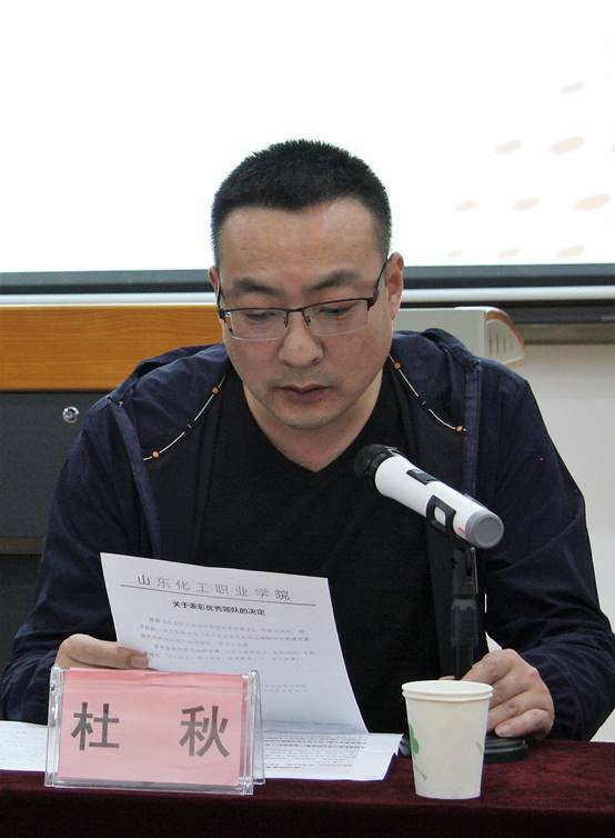 杜秋经理宣读学院《关于表彰优秀学员的决定》