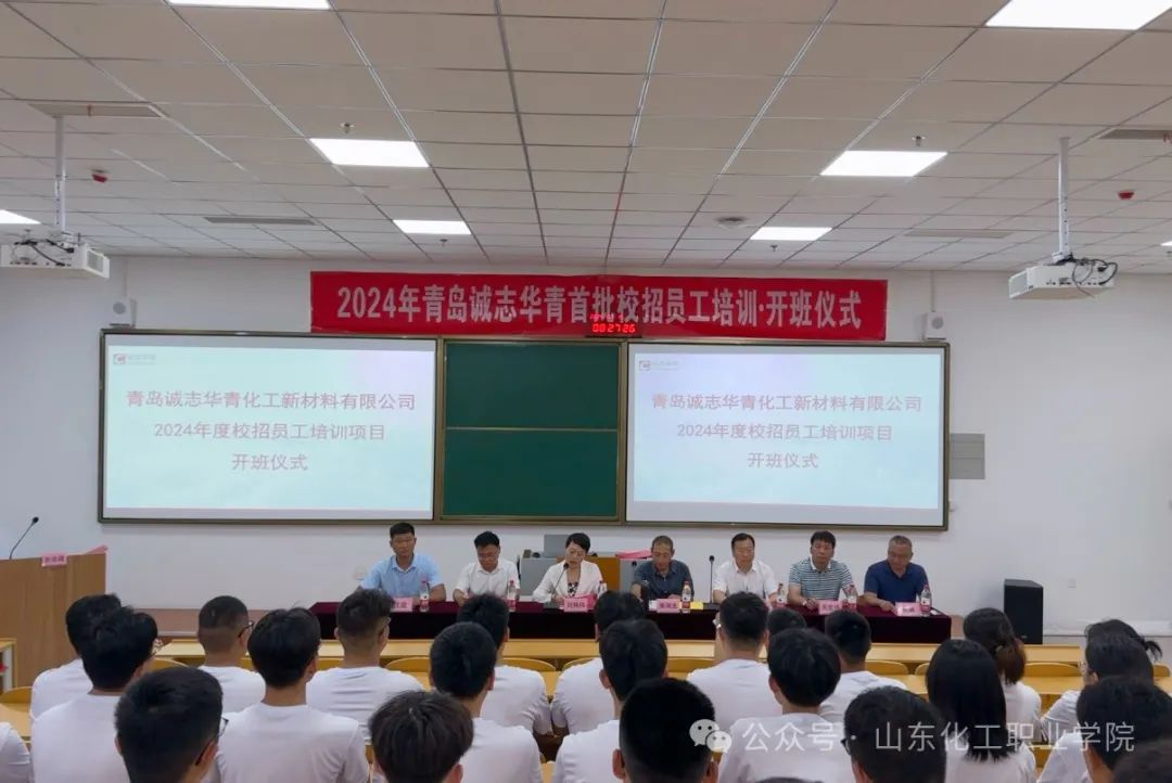 7月15日,青岛诚志华青化工新材料有限公司2024年度校招员工培训项目在我校正式启动。青岛诚志华青化工新材料有限公司总经理宋海生、副总经理刘伟伟,学校校长贺志强出席开班仪式。